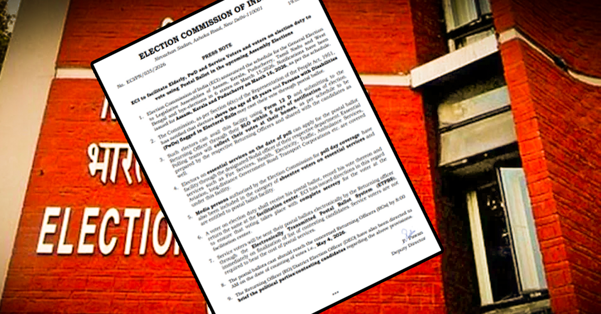 আসন্ন বিধানসভা নির্বাচনের আগে গুরুত্বপূর্ণ সিদ্ধান্ত নিল নির্বাচন কমিশন (ECI)। প্রবীণ নাগরিক, প্রতিবন্ধী ভোটার (PwD), নির্বাচন দায়িত্বে থাকা কর্মী এবং জরুরি পরিষেবার সঙ্গে যুক্ত ব্যক্তিদের জন্য পোস্টাল ব্যালটের সুবিধা চালু করা হচ্ছে।