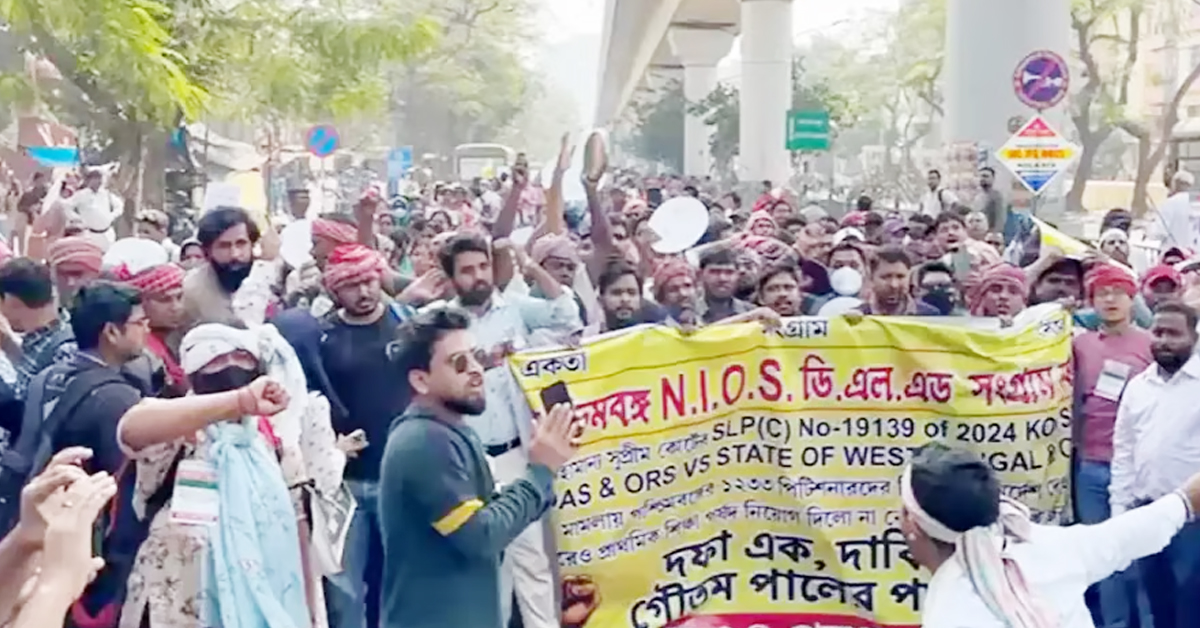 ডিগ্রি অর্জনের পরও দীর্ঘদিন চাকরি না মেলায় আন্দোলনে নামলেন পশ্চিমবঙ্গের NIOS ডিএলএড উত্তীর্ণ প্রার্থীরা। সোমবার সল্টলেকের বিকাশ ভবন অভিযানের ডাক দেয় ‘পশ্চিমবঙ্গ NIOS ডিএলএড সংগ্রাম মঞ্চ’। সুপ্রিম কোর্টের নির্দেশ সত্ত্বেও নিয়োগ প্রক্রিয়া সম্পূর্ণ হয়নি—এই অভিযোগ তুলে বিক্ষোভ দেখান চাকরিপ্রার্থীরা।